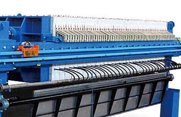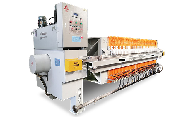 隔膜壓濾機(jī)是一種低耗能、效率高的間歇性的加壓過濾設(shè)備。用于各種懸浮液的固液分離,是依靠壓緊裝置將濾板壓緊,再將懸浮液用泵壓入濾室,通過濾布來達(dá)到將固體顆粒和液體分離。