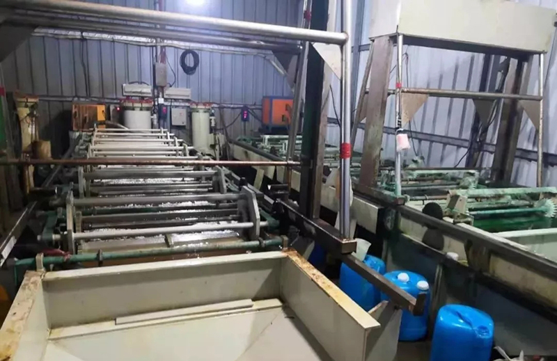 “全部蹲下,不許動!”1月3日晚10點左右,當(dāng)公安人員撬開鐵皮房大門時,有電鍍廠正在生產(chǎn),公安人員當(dāng)場控制了里面的人員,并用工具打開了其他電鍍廠的門,發(fā)現(xiàn)整個場地內(nèi)共6家電鍍廠,其中兩家現(xiàn)場在生產(chǎn),其他的現(xiàn)場沒有生產(chǎn),但是有多條電鍍生產(chǎn)線。