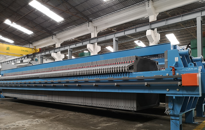 隔膜壓濾機(jī)在工業(yè)上的工作性能是在脫水完成后,解除濾板的機(jī)械壓緊力,單塊逐步拉開濾板,分別敞開濾室進(jìn)行卸餅為一個(gè)主要工作循環(huán)完成。根據(jù)過(guò)濾物料性質(zhì)不同,壓濾機(jī)可分別設(shè)置進(jìn)漿脫水、擠壓脫水、風(fēng)吹脫水或單、雙面脫水,目的是大限度地降低濾餅水份。從運(yùn)輸、處理等方面節(jié)約其運(yùn)行成本,這是一個(gè)長(zhǎng)遠(yuǎn)利益。