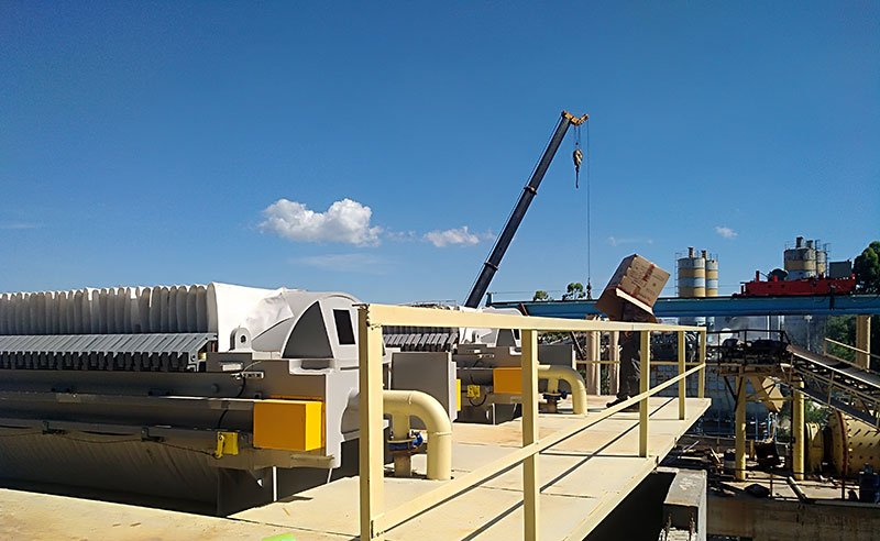 高干度,高產能,廢渣可壓榨至含水率30%以下,低至15%,比普通廂式壓濾機低10個點,比帶式壓濾機低15個點,配置金凱地壓濾機廠家兩臺XMYD1500-130PC-400廂式高壓壓濾機可滿足1000m3/d洗砂生產線的廢渣脫水需求。