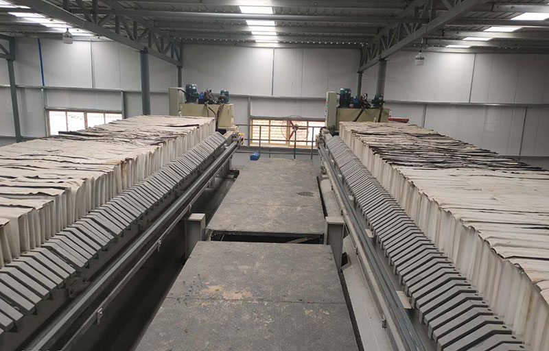 高干度,高產(chǎn)能,廢渣可壓榨至含水率30%以下,低至15%,比普通廂式壓濾機低10個點,比帶式壓濾機低15個點,配置我司兩臺XMYD1500-130PC-400廂式高壓壓濾機可滿足1000m3/d洗砂生產(chǎn)線的廢渣脫水需求。