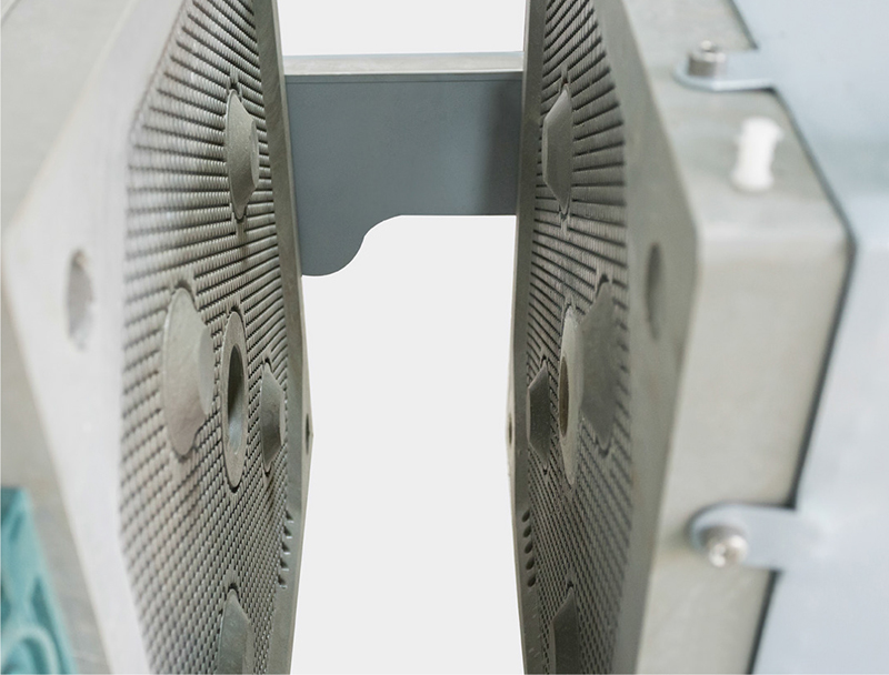 4、濾板的移動方式??梢酝ㄟ^液壓一氣動裝置全自動或半自動完成,以減輕操作人員勞動強(qiáng)度。