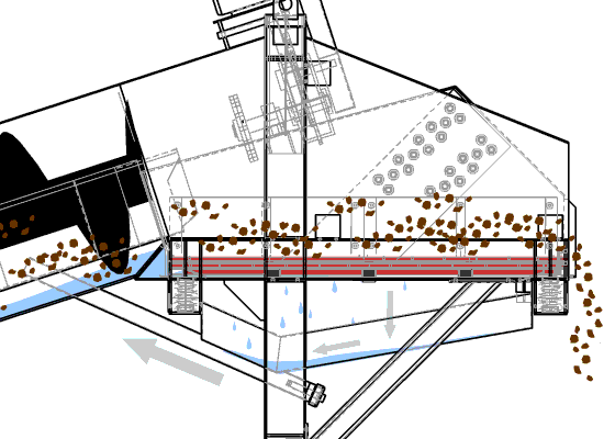 故障原因:1)螺旋洗砂機(jī)轉(zhuǎn)速過高;2)螺旋盤的水平軸沒有固定好。