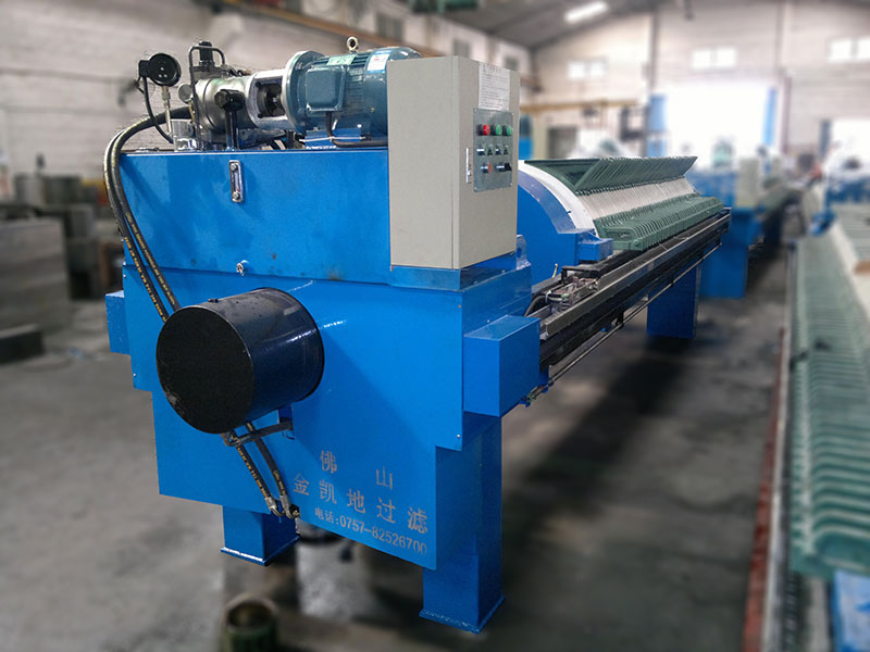 泥漿處理壓濾機的工作原理比較簡單,就是一個物理壓榨過程。污泥泵將泥漿從沉淀池抽進(jìn)設(shè)備,設(shè)備接受來自液壓裝置的壓力對濾板進(jìn)行壓緊,機身的油缸進(jìn)行保壓,濾板之間的濾布截留住污水中的泥渣,清水從下方的孔隙處流出,大量泥渣在濾板間形成泥餅。